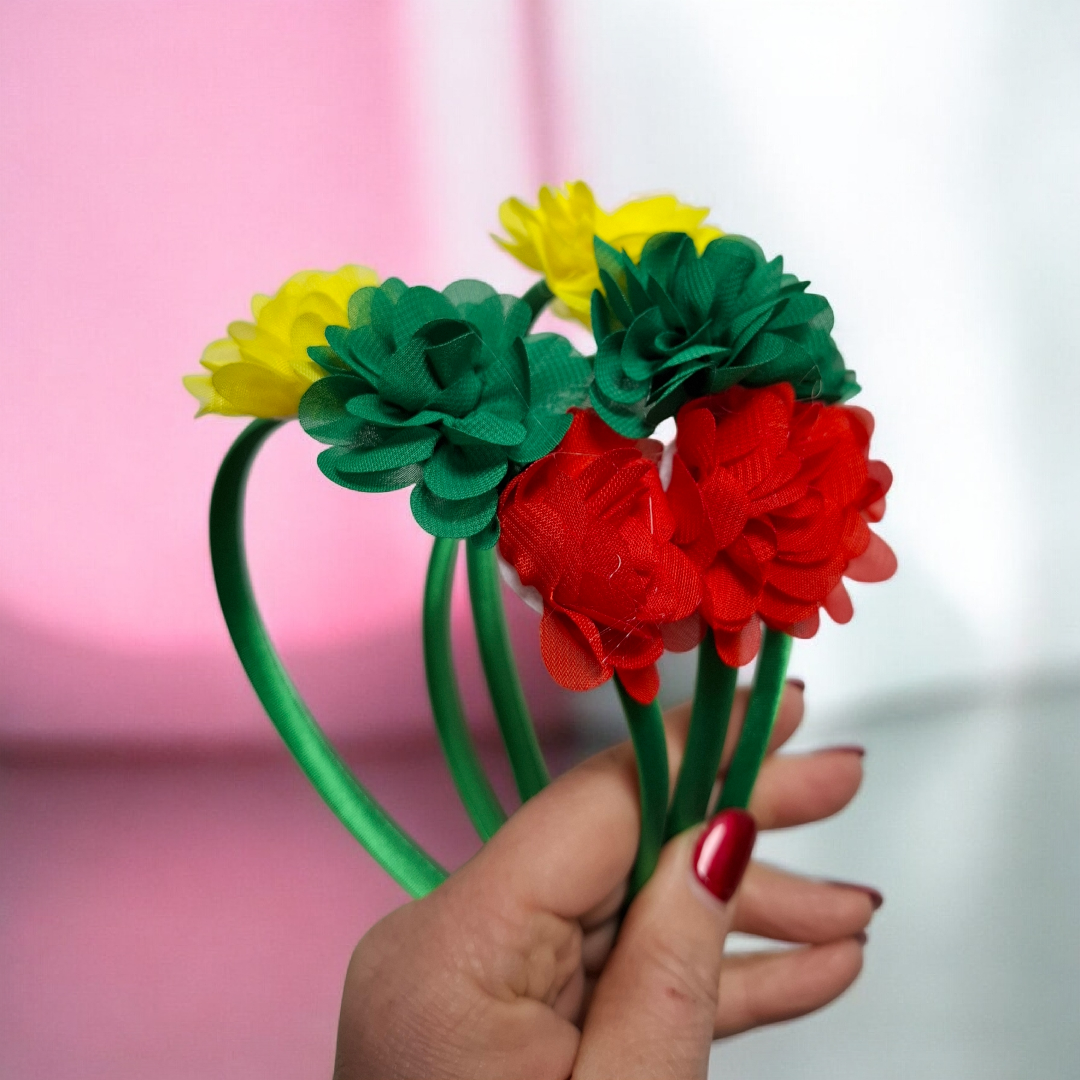 Žaismingas lankelis mergaitėms su trispalvės spalvų gėlytėmis – geltona, žalia ir raudona. Lengvas, patogus ir švelnus, su subtilia LT simbolika. Puikiai tinka valstybinėms šventėms, darželio renginiams ar ypatingoms progoms 🇱🇹💛💚❤️