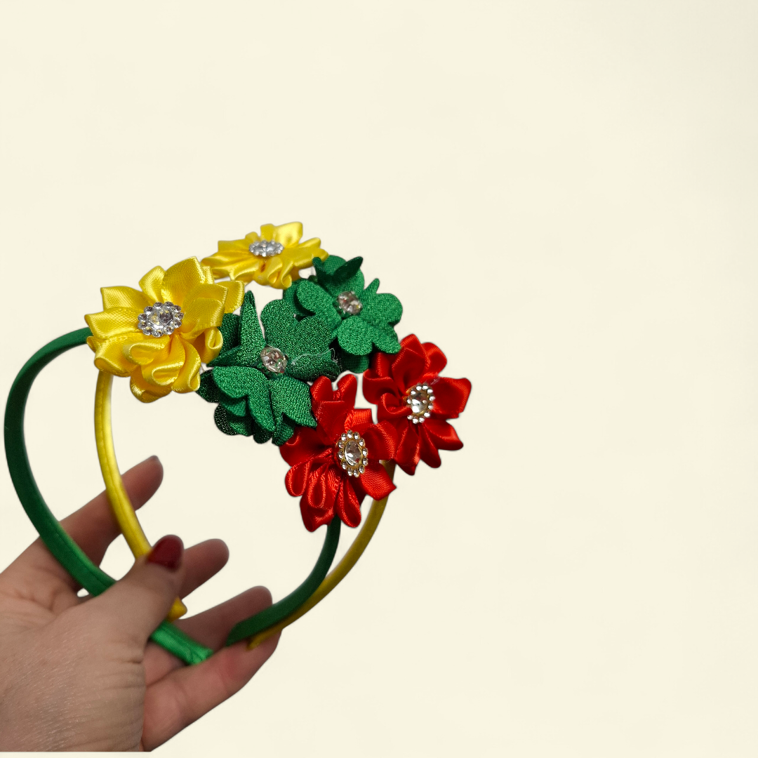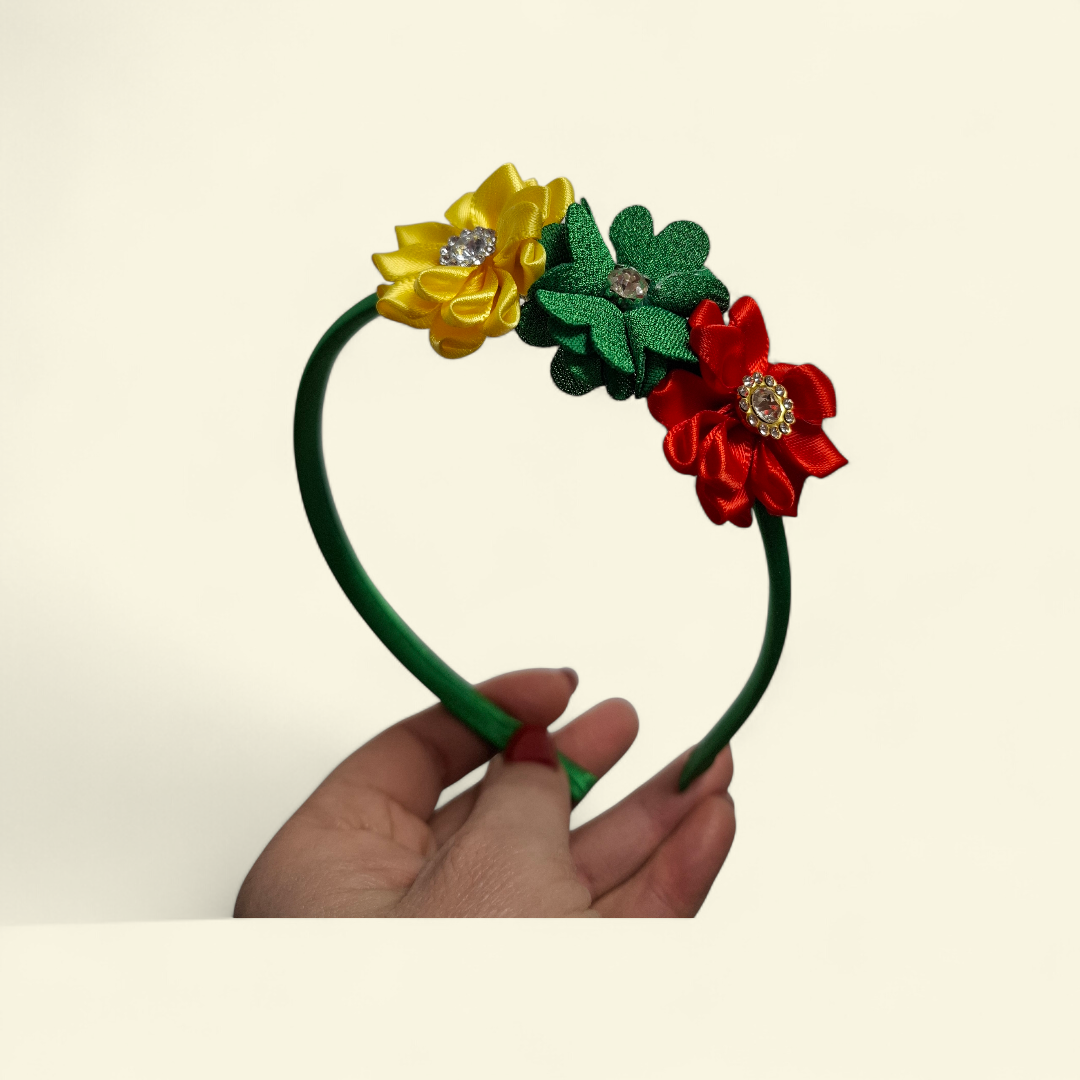 Lengvas ir patogus Trispalvės spalvų lankelis mergaitėms. Subtilios geltonos, žalios ir raudonos gėlytės sukuria švelnų, patriotišką akcentą, tinkantį šventėms ir kasdienai. Maloniai priglunda, nespaudžia ir džiugina mažąsias 🇱🇹